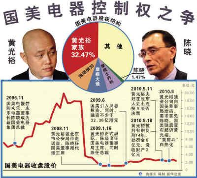 綜觀整個事件,失去人身自由的黃光裕隔空應戰(zhàn)自如,只擁有1.47%國美股權(quán)的陳曉“以小博大”,對抗擁有32.47%股權(quán)的控制權(quán),看似不可為,實則都在國美特有公司規(guī)則下合法騰挪