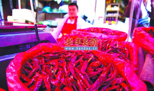 記者走訪了島城的多個(gè)農(nóng)貿(mào)市場(chǎng)發(fā)現(xiàn),如今,市場(chǎng)上的干辣椒每公斤可達(dá)50多元。