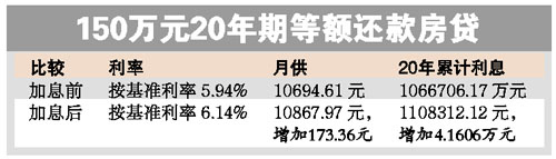 貸款利率上調(diào),也令貸款企業(yè)和貸款買房買車的市民貸款成本上升。不過,由于銀行對(duì)首套房貸實(shí)行優(yōu)惠利率,對(duì)于能獲取下浮利率的首套房貸客戶而言,此次加息帶來的實(shí)際影響將比加息幅度要小。以此前獲七折優(yōu)惠利率的房貸客戶為例,打完折后,其承擔(dān)的實(shí)際利率,將由此前的4.158%上調(diào)為4.298%,實(shí)際上調(diào)幅度只有0.14個(gè)百分點(diǎn)。
