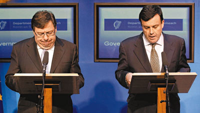 愛爾蘭總理考恩表示,援助計(jì)劃包括兩部分:首先當(dāng)?shù)劂y行業(yè)需要縮小規(guī)模,出售部分非核心資產(chǎn);其次是落實(shí)4年緊縮計(jì)劃,目標(biāo)在2014年前削赤150億歐元,將財(cái)赤占國(guó)內(nèi)生產(chǎn)總值(GDP)比例由目前32%減至歐盟規(guī)定的3%。