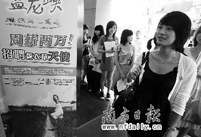 德慶盤龍峽2萬元周薪招聘“薰衣草天使”活動(dòng)進(jìn)入了現(xiàn)場(chǎng)招聘環(huán)節(jié)。記者昨日在招聘現(xiàn)場(chǎng)看到,應(yīng)聘人需先填寫報(bào)名表格經(jīng)過第一關(guān)面試,過關(guān)后進(jìn)入第二關(guān)———拍照,而第二關(guān)讓不少人笑稱為“選美比賽”。