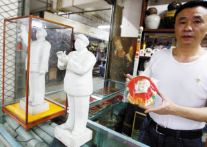 “近兩年,紅色藏品行情每年都以30%~50%的幅度上漲,兩三年就能翻一番!惫葘W(xué)書稱,盡管價格連漲,卻仍是供不應(yīng)求,這其中尤以上世紀(jì)60年代末到70年代初,唐山出產(chǎn)的各種規(guī)格毛主席瓷塑像最受歡迎——因唐山地震導(dǎo)致該品種存世量小,眼下已是一尊難求,不管是半身像還是全身像,高度上了60公分的話,沒有上萬元根本拿不下。