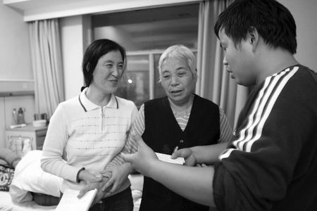在一間病房里,臉色蒼白的小夢(mèng)夢(mèng)正安靜地躺在病床上看電視。她的奶奶、媽媽陪伴在旁邊,媽媽正給小夢(mèng)夢(mèng)削梨吃。聽說是大河報(bào)來采訪,小夢(mèng)夢(mèng)的奶奶、媽媽“騰”地從床上站起來,握著記者的手連聲感謝。