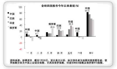 金融海嘯之后,中國、巴西、俄羅斯、印度在經(jīng)濟(jì)增長以及財(cái)政上的表現(xiàn)令人刮目相看,股市今年以來平均漲幅逾六成,中國的漲幅超過八成,將成熟國家遠(yuǎn)遠(yuǎn)拋在后面