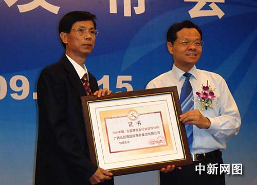 發(fā)布會上,中共廣西壯族自治區(qū)委員會常委、自治區(qū)副主席陳武為中國銀行廣西分行、廣西中煙、廣西北部灣國際港務(wù)集團(tuán)有限公司、上海通用汽車有限公司等此次與中國—東盟博覽會簽署合作伙伴協(xié)議的38家企業(yè)頒發(fā)證書,表明雙方合作的極大誠意。