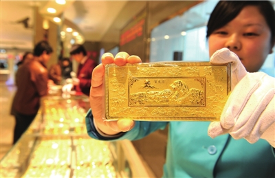 據(jù)了解,由于去年金價低迷,牛年賀歲金條售價為每克216元,比前年每克便宜了3元。記者查詢了上海黃金交易所的交易記錄,發(fā)現(xiàn)去年12月初牛年賀歲金條上市時,Au9999金價格僅為每克170元左右,也就是說當(dāng)年賀歲金條發(fā)售時每克在金交所價格上再加價近50元。昨天,上海金交所Au9999的價格每克再漲2.85元,收報246.34元/克,比去年12月的價格每克高了70多元。照此估算,虎年賀歲金條發(fā)售時,身價極可能會上漲到每克280元左右,大大超出曾是“最高價”的每克219元的鼠年賀歲金條價格。