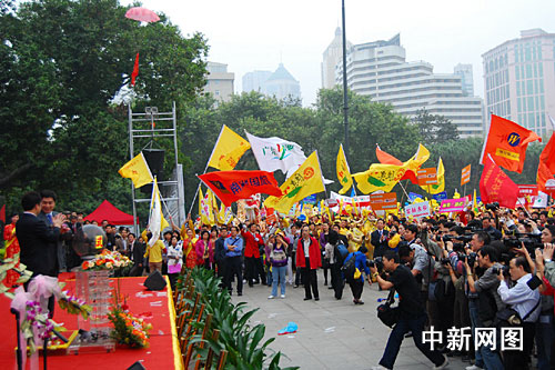 中新網(wǎng)廣州2月23日電(記者 莫非 通訊員 月明 梁婕 鐘山)廣東旅游業(yè)界2009年大利好浮出水面,國民旅游休閑計劃23日開始正式實施。廣東省各大旅業(yè)集團(tuán)、旅行社紛紛積極響應(yīng),召集了來自珠三角地區(qū)4000多名游客聚集在廣州中山紀(jì)念堂前參加啟動儀式。