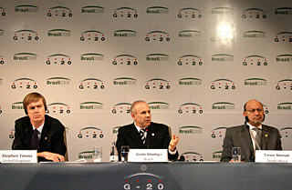 巴西政府在二十國(guó)集團(tuán)財(cái)政部長(zhǎng)和中央銀行行長(zhǎng)年會(huì)閉幕后發(fā)布一份公報(bào),就世界金融管理、國(guó)際金融機(jī)構(gòu)改革等問題提出建議。
