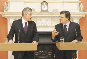 巴羅佐在與英國首相布朗會(huì)晤后舉行的記者會(huì)上說:“歐洲需要財(cái)政政策方面的刺激,但這不可能是符合所有方面利益的方案!彼J(rèn)為,針對(duì)國際金融危機(jī)出臺(tái)的經(jīng)濟(jì)刺激方案盡管是暫時(shí)性的,但非常必要。