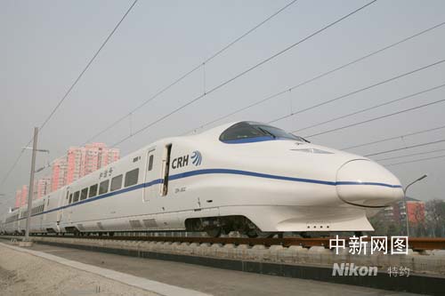 資料圖:2008年4月24日,記者從京津城際鐵路動車組開行試驗(yàn)單位獲悉,目前正在進(jìn)行試驗(yàn)的設(shè)計(jì)時速300公里國產(chǎn)動車組創(chuàng)造了近370公里時速的新紀(jì)錄。據(jù)專業(yè)人士介紹,國產(chǎn)動車組能夠安全平穩(wěn)達(dá)到這一高速,說明國產(chǎn)化高速動車組能夠勝任京津城際鐵路的運(yùn)輸重任。對京津兩地百姓來說,通過高速鐵路實(shí)現(xiàn)北京到天津半小時就可到達(dá)的愿望已經(jīng)指日可待。