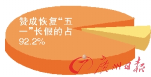 據(jù)了解,兩會(huì)以來(lái),已有數(shù)十名代表委員在兩會(huì)的各個(gè)場(chǎng)合為“五一”黃金周大聲疾呼。而在網(wǎng)上的調(diào)查中,網(wǎng)民對(duì)恢復(fù)“五一”黃金周的提議支持率也很高,在人民網(wǎng)“你是否贊成恢復(fù)‘五一’長(zhǎng)假”的調(diào)查顯示,共有500多萬(wàn)名網(wǎng)友參與了網(wǎng)上調(diào)查,其中贊成恢復(fù)“五一”長(zhǎng)假的占92.2%。