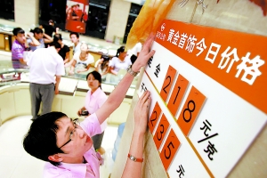 兩三天一個價,近來頻繁變動的京城金價讓零售賣場里的固定價簽來不及“應(yīng)付”,幾乎失去了作用。一種即時顯示黃金、鉑金飾品當日價格的動態(tài)顯示牌今天開始亮相。據(jù)了解,這種掛牌顯示貴金屬價格的標注方式已經(jīng)在發(fā)改委備案,將在全市推廣,逐步取代柜臺上的固定價簽。對于消費者來說,今后將更多地習慣金價的“多變”:不同時間購買金飾品的價格可能會相差數(shù)百元。