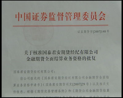 為了搞清楚這個(gè)問題, 我們記者也走訪了與股指期貨息息相關(guān)的幾家機(jī)構(gòu)。國泰君安期貨公司是首批拿下股指期貨經(jīng)紀(jì)業(yè)務(wù)資格的期貨公司,國泰君安期貨公司總經(jīng)理何曉斌一見到記者便拿出了國泰君安獲準(zhǔn)經(jīng)營(yíng)全面結(jié)算業(yè)務(wù)資格的證書,而他們恰恰是第一號(hào)會(huì)員,何曉斌告訴記者,作為第一號(hào)會(huì)員,處在各方高度關(guān)注的視線中,所以準(zhǔn)備工作容不得一點(diǎn)馬虎,要備戰(zhàn)股指期貨,經(jīng)紀(jì)公司必須做好如下方面的準(zhǔn)備: