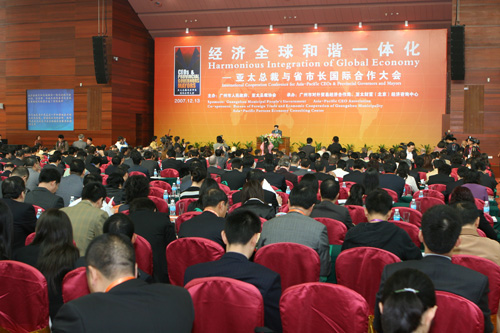 本次大會開幕式,由廣州市副市長陳明德主持,張廣寧市長和鮑勃•霍克主席分別致辭。張廣寧市長指出,當(dāng)今世界,經(jīng)濟全球化和區(qū)域經(jīng)濟一體化進程不斷加快,為各國、各地區(qū)經(jīng)濟要素在全球范圍的優(yōu)化配置和經(jīng)濟效益的提高創(chuàng)造了有利條件。但是目前全球化進程也充滿矛盾和不均衡,如何正確認識和妥善應(yīng)對全球化,建立長期聯(lián)系的穩(wěn)定有效機制,推進全球化進程朝著均衡、普惠、共贏的方向發(fā)展,創(chuàng)建共同繁榮的和諧世界,是許多具有遠見卓識的人士共同關(guān)心的重大問題。張市長呼吁,亞太地區(qū)各方更應(yīng)進一步加強相互間的交流與溝通,增進彼此間的合作,共同促進亞太地區(qū)乃至全球經(jīng)濟的繁榮和持續(xù)發(fā)展。