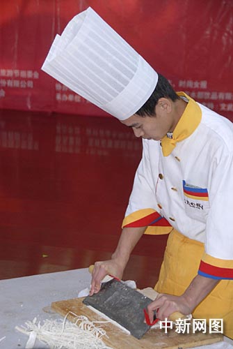 除了較量廚技,長春各酒店的廚師們還帶來了精彩的廚藝絕活表演,鞏玉輝師傅的剪刀面、讓現(xiàn)場(chǎng)觀眾領(lǐng)教了什么是“面板上的舞蹈”,而曹清春師傅的現(xiàn)場(chǎng)食品雕刻,則帶來了一場(chǎng)視覺盛宴。