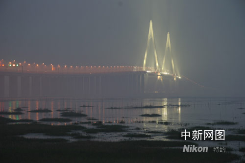 中新網(wǎng)嘉興4月17日電 (吉翔)一連三天,跟隨全網(wǎng)絡(luò)媒體杭州灣跨海大橋行采訪團(tuán)走訪大橋本身以及周邊工業(yè)區(qū),經(jīng)過幾天的走、瞧、想之后,所得出的感覺可以引用毛主席一句詩形容—— “一橋飛架南北,天塹變通途”。