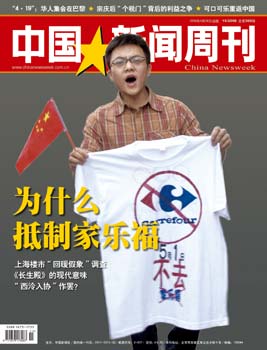 這是21世紀初中國民眾第三次大規(guī)模抵制洋貨,矛頭指向法國在中國最真實的存在——遍及30多個城市、擁有112家分店的家樂福超市。傳導(dǎo)鏈條則是人們熟悉的渠道——網(wǎng)絡(luò)社區(qū)、QQ、MSN。 事件發(fā)生后,《中國新聞周刊》記者前往北京、昆明、武漢等地,對“抵制家樂!钡娜巳骸⒃蚝捅尘斑M行了調(diào)查,這就是本期《中國新聞周刊》的封面故事。