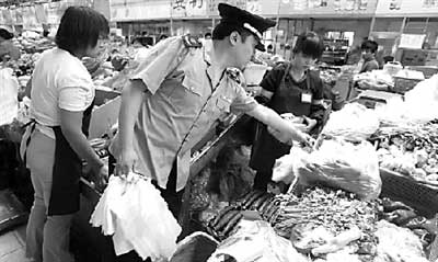 昨天(1日)是全國(guó)實(shí)行“限塑令”的第一天。當(dāng)天,北京各大超市都遵守禁令,對(duì)塑料袋進(jìn)行了明碼標(biāo)價(jià)。不過(guò),記者發(fā)現(xiàn)肯德基仍然提供免費(fèi)塑料袋,而自由市場(chǎng)中的攤販則說(shuō)“沒(méi)聽(tīng)說(shuō)過(guò)禁令”。