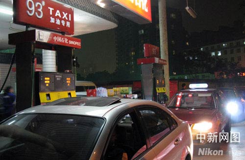 圖為6月19日深夜,北京部分司機(jī)獲悉成品油調(diào)價(jià)消息后,趕在20日凌晨零點(diǎn)前在加油站排起長龍加油。 記者 余瑞冬攝