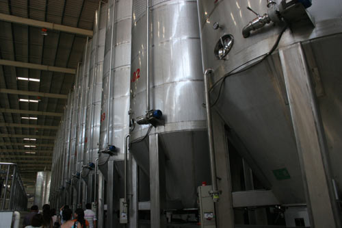 南山集團(tuán)葡萄酒廠重達(dá)百噸的釀酒罐。