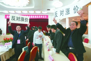 正當大家以為他要說出意見時,李祥突然站起來,手舉用泡沫板做成的牌子,牌子上貼著四個黑體字:反對漲價。該舉動在與會人員中引起了短暫的騷動。隨后他舉著牌子,對著會場不同方位的觀眾席來回展示,這時,坐在他身后不遠處的一名旁聽代表,也舉著類似的牌子,配合著李祥。