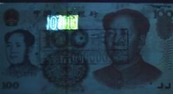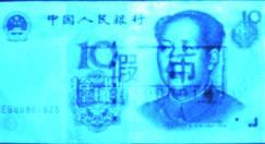 經(jīng)過(guò)處理的假鈔紙張的熒光反應(yīng)