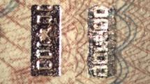 第四種偽造安全線(xiàn)是第二種和第三種的組合,既有燙印開(kāi)窗,又有實(shí)物安全線(xiàn)置于紙張夾層內(nèi)。(見(jiàn)下圖)