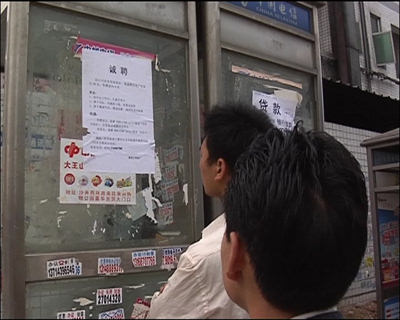 這就是他們倆頭一天交錢的地方,如今已是人去樓空,李美銳和肖方云白白損失了20塊錢,不過最終在記者的建議下,兩人還是在幾經(jīng)打聽后,來到了附近的一個(gè)勞動(dòng)力市場(chǎng),這是個(gè)很正規(guī)的中介機(jī)構(gòu),但在市場(chǎng)轉(zhuǎn)了一會(huì)后,兩人又碰到了一個(gè)難題。