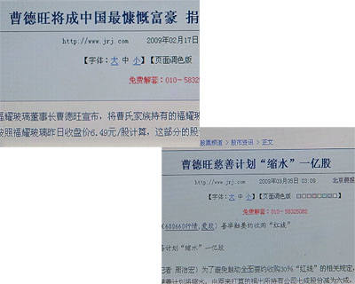 記者:“今天我們訪問的是福耀玻璃股份有限公司董事長曹德旺,他是中國的玻璃大王,全中國的汽車中,每兩輛有一輛用的是福耀的玻璃,在過去的五年里,曹德旺投資了五十多個億,進(jìn)行產(chǎn)業(yè)擴(kuò)張,因此外界也把他稱作是一個產(chǎn)業(yè)擴(kuò)張的大鱷,最近這個玻璃大鱷卻突然宣布,他要把他和他家族名下的大部分股票捐贈出去,而這個消息引發(fā)的確是外界的傳言和猜測,這其中究竟有怎樣的玄妙,我們一起到曹德旺位于福州的家里去,向他本人尋求問題的答案!