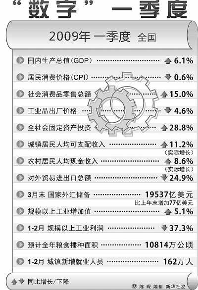 與上年同期比,一季度GDP6.1%的增長(zhǎng)幅度回落了4.5個(gè)百分點(diǎn),雖然不是個(gè)漂亮的數(shù)字,但放在金融危機(jī)的大背景下看,各個(gè)方面都會(huì)承認(rèn)這是一個(gè)來(lái)之不易、好于預(yù)期的增長(zhǎng)速度。細(xì)讀統(tǒng)計(jì)數(shù)據(jù)的8個(gè)部分,國(guó)民經(jīng)濟(jì)運(yùn)行的積極變化顯而易見(jiàn)。國(guó)家統(tǒng)計(jì)局新聞發(fā)言人李曉超用兩個(gè)“穩(wěn)”、兩個(gè)“快”、三個(gè)“高”和三個(gè)“縮小”,來(lái)概括這種積極變化的幾個(gè)方面。