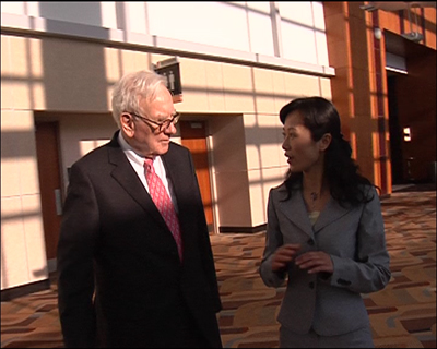 記者:“我現(xiàn)在是在美國內布拉斯加州的小鎮(zhèn)奧馬哈,每年母親節(jié)的前一個星期六,都會有來自世界各地的人來到這個小鎮(zhèn),他們懷著一種朝圣的心理來到這里,是為了一個人:沃倫•巴菲特,今天是伯克希爾哈撒韋公司2008年的年會,呆會有3.5萬人將要進入我身后的這個中心廣場。”