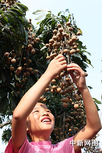 中新網涪陵9月6日電(記者 郭虹)黃澄澄的龍眼(又稱“桂圓”)掛滿了綠葉蔥郁的枝頭,大串大串的果實壓彎了密密細細的枝椏。今天,重慶市涪陵區(qū)的三峽移民舉辦“魅力涪陵—三峽庫區(qū)龍眼文化節(jié)”,請八方來客品味長江百年龍眼、領略南沱移民風情,以此慶賀大豐收。