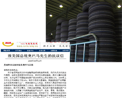 中國橡膠工業(yè)協(xié)會會長范仁德:“知道美國政府裁決了特保案之后,協(xié)會立刻就做出了反應(yīng),首先是在中國橡膠網(wǎng),發(fā)布了對奧巴馬的抗議信,表示中國的輪胎協(xié)會和中國的涉案企業(yè),對奧巴馬裁決特保案,表示了最大的遺憾和堅決的反對,和抗議!