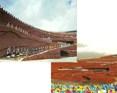 記者:“我現(xiàn)在是在麗江海拔3100米,玉龍雪山的半山腰,過去這里只是普通的山洼洼,但是從2006年7月開始,印象系列的第二部作品《印象麗江》在這里演出,把這里變成了世界上海拔最高的實(shí)景演出場地,從此之后演出每天進(jìn)行,到現(xiàn)在已經(jīng)有200萬名觀眾觀看了演出,吸引他們的是什么呢?”