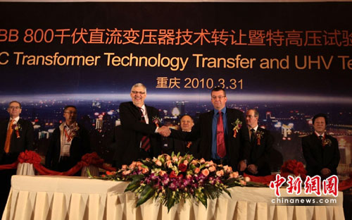 中新網重慶3月31日電(記者 郭虹)31日,位居全球500強之列的電力和自動化技術領域的廠商ABB集團在渝簽署協議,將800千伏高壓直流變壓器技術轉讓給其在華企業(yè)——重慶ABB變壓器有限公司;同時,ABB特高壓試驗中心亦在此落成。