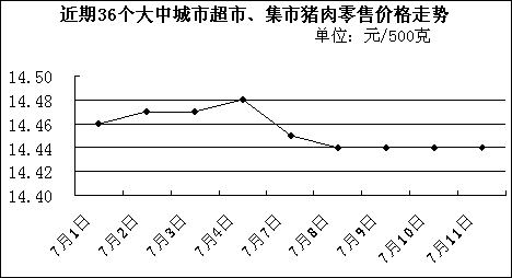中新網(wǎng)7月14日電 國家發(fā)改委網(wǎng)站消息稱,據(jù)國家發(fā)展改革委價格監(jiān)測中心監(jiān)測,上周(7月7日-7月11日)全國36個大中城市集市、超市豬肉(精瘦肉)平均零售價格每500克為14.44元,比前一周(6月30日-7月4日,下同)下降0.21%。