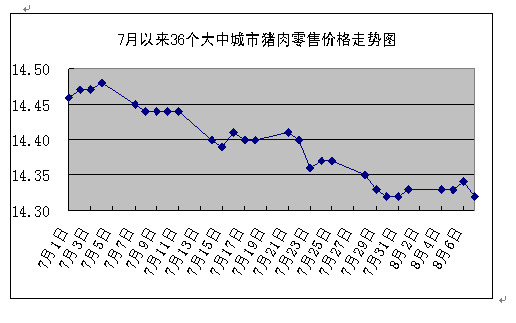 中新網(wǎng)8月11日電 據(jù)國家發(fā)改委網(wǎng)站消息,發(fā)改委價(jià)格監(jiān)測(cè)中心監(jiān)測(cè)顯示,上周(8月4日~8月7日)全國36個(gè)大中城市集市、超市豬肉(精瘦肉)平均零售價(jià)格每500克為14.33元,與前一周(7月28日~8月1日,下同)持平。