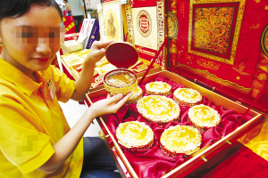 營業(yè)員正展示價值2888元的月餅。 圖片來源:重慶商報