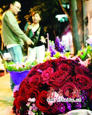 記者昨日路過福田區(qū)荔枝公園附近一家花店時發(fā)現(xiàn),小店里面和門口都擺滿了各式鮮花,玫瑰、百合、紫羅蘭、香蓮……一束束正在嬌艷欲滴。店員們穿梭在花叢中接訂單、挑選鮮花、搭配、包裝……忙得不亦樂乎!斑@兩天是我們一年里生意最好的時候,不忙才怪呢!币幻陠T對記者說,從元宵節(jié)前開始,花店的生意就一直往上走,這兩天尤其火爆。