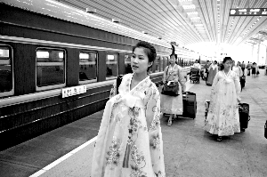 昨日,朝鮮血海歌劇團(tuán)《紅樓夢(mèng)》劇組的演職人員在遼寧丹東邊防檢查站辦理出境手續(xù)。當(dāng)日上午,朝鮮血海歌劇團(tuán)《紅樓夢(mèng)》劇組的197名演職人員結(jié)束了在中國(guó)10余個(gè)城市兩個(gè)多月的巡演,從遼寧丹東邊防檢查站開(kāi)設(shè)的特別通道出境,乘坐丹東至朝鮮平壤的專(zhuān)列回國(guó)。新華社發(fā)