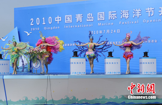 中新網(wǎng)7月24日電(記者田博川) 今日上午,由中國國家體育總局、國家旅游局、國家海洋局、海軍司令部以及北京奧運(yùn)城市發(fā)展促進(jìn)會(huì)和青島市政府聯(lián)合主辦的“2010中國青島國際海洋節(jié)”在奧帆中心隆重開幕。