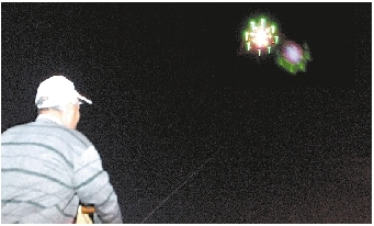 根據(jù)不明飛行物大概的方位,記者跟著“飛行物”方向一路尋找,發(fā)現(xiàn)不明飛行物就在火車頭體育場(chǎng)上空附近,體育場(chǎng)內(nèi)有人在放夜風(fēng)箏。原來燈光是夜風(fēng)箏上夜光設(shè)備不斷地發(fā)出不同顏色的光。