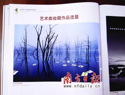 電話里,陳聯(lián)軍告訴記者,他愛(ài)好攝影,這次也投了稿。但7月底,陳聯(lián)軍把藝術(shù)類(lèi)金獎(jiǎng)作品《明天的現(xiàn)實(shí)》圖樣拿給廣告公司的同事看,結(jié)果同事們發(fā)現(xiàn),《明天的現(xiàn)實(shí)》的背景———被水淹沒(méi)的枯樹(shù)林與10年前他們所購(gòu)買(mǎi)的《全球最新圖庫(kù)大百科》圖庫(kù)里一張未署名的相片如出一轍,只是調(diào)換了方位“翻了個(gè)身”。