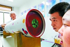 ▲ 老李參加了殘聯(lián)的幫扶活動,義務(wù)輔導(dǎo)智障人士制作簡單的萬花筒,進行康復(fù)訓(xùn)練。為了讓學(xué)員們產(chǎn)生興趣,他特意搬來自己制作的目前國內(nèi)最大的萬花筒,長達1.4米。