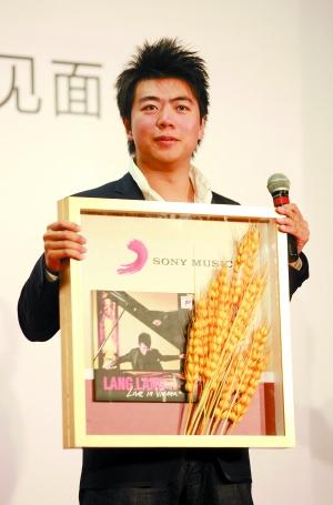 唱片公司為郎朗送上大麥祝他新專輯“大賣(mài)”。本報(bào)記者 郭延冰 攝