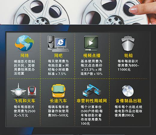 日前,中國(guó)電影著作權(quán)協(xié)會(huì)向國(guó)家版權(quán)局上報(bào)《電影作品著作權(quán)集體管理使用費(fèi)收取標(biāo)準(zhǔn)》,擬向視頻網(wǎng)站、網(wǎng)吧、長(zhǎng)途汽車等收取電影版權(quán)使用費(fèi)!妒褂觅M(fèi)收取標(biāo)準(zhǔn)》已在國(guó)家版權(quán)局網(wǎng)站進(jìn)行了公示。