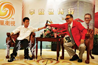 《李戡戡亂記》里有不少抨擊之語,有人將李戡和大陸的韓寒相提并論。在昨天的采訪中,李敖讓兒子回應(yīng)此事,兒子有點緊張,只說“大陸那么多人,不知為何總拿韓寒和自己相提并論”云云。李敖急了,接過麥克風(fēng)為兒子撐腰,“韓寒如果一輩子寫小說、賽車,那都沒問題。他如果想談一點時事,那顯然就缺乏深度。能和我談司馬光的《資治通鑒》嗎?沒看過,人家根本就不會和你談。韓寒一進(jìn)入這個境界,就會出局!崩畎诫S即又露出驕傲的神色:“韓寒比我兒子大10歲,這10年,我兒子會翻江倒海,去玩賽車,也未可知。”