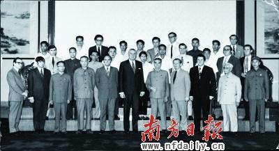 ▲周恩來和惠特拉姆等在人民大會堂的合影。