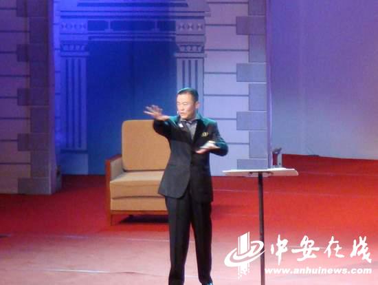 油亮亮的小分頭,筆挺熨帖的黑色禮服,操著“國語”說海派清口,一個人在臺上連說帶演緊忙活,他就是周立波。9月18日晚,周立波用他“上海話+普通話+合肥話”的精彩表演則讓現(xiàn)場笑聲不斷,掌聲雷鳴。