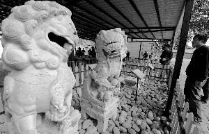 中山公園的蘭亭八柱和蘭亭碑、文津街老國圖的文源閣碑、中國對(duì)外友協(xié)院中的綺春園銅獅……三年前公布的“圓明園流散文物調(diào)查報(bào)告”統(tǒng)計(jì),圓明園文物散落在北京地區(qū)有近百件,包括碑碣、石雕、石刻、玉器、瓷器等,集中在十余處單位和民宅。